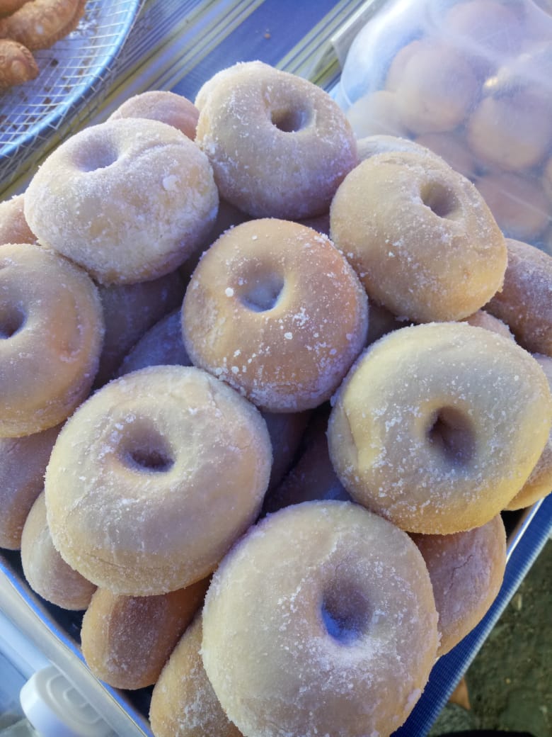 Spongy, Soft Doughnut Coated with fine sugar melted in your mouth.